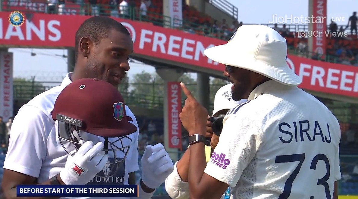 West Indies had a real show of Day 4 at the Arun Jaitley Stadium at Delhi, after India asked them bat for the second time. As predicted earlier, India did have a hard time with the bowlers toiling to get a wicket after getting two on Day 3. However, amidst all the struggles, Mohammed Siraj's seemingly warning to the West Indian all-rounder Justin Greaves at the boundary on Day 4 caught the eyes. Lovingly called as "DSP," Siraj was seen walking to Greaves during the Tea session right before the third session and was seemingly warning Greaves. The duo then had a laugh, which caught the eyes of the fan. Classic Miyan vibes! 😅🔥Mohammed Siraj’s cheeky moment with Greaves lights up the field pic.twitter.com/wTMu1euP5i — CricketGully (@thecricketgully) October 13, 2025 Read also: Watch: KL Rahul Grunts in Pain After Groin Blow on Day 4 of 2nd Test vs WI Greaves-Seales delayed India's chase with 79-run partnership India are just 58 runs away from victory in the second Test against the West Indies after asserting complete control in Delhi. Earlier, India piled up a mammoth 518 for 5 declared, with dominant performances from Shubman Gill and KL Rahul. The visitors were bowled out for 248 in their first innings and forced to follow on. In the second innings, however, the West Indies showed rare resistance. John Campbell registered his maiden Test century with a gritty 115 off 199 balls, while Shai Hope broke an eight-year drought to score 103 off 214 balls. Their partnership revived hopes before India’s spinners took charge. But the real twist came lower down the order when Justin Greaves fought valiantly with an unbeaten 50 off 85 deliveries, steering the tail with maturity. Greaves found crucial support from Jayden Seales, who contributed 32 runs, as the duo added 79 runs for the eighth wicket, frustrating India for more than 20 overs. Their stand pushed the West Indies total to 390, a commendable recovery after early setbacks. Chasing 121, India reached 63/1 at stumps, with KL Rahul (25)* and Sai Sudharsan (30)* at the crease. The hosts now need only 58 more runs to clinch a comfortable series win.