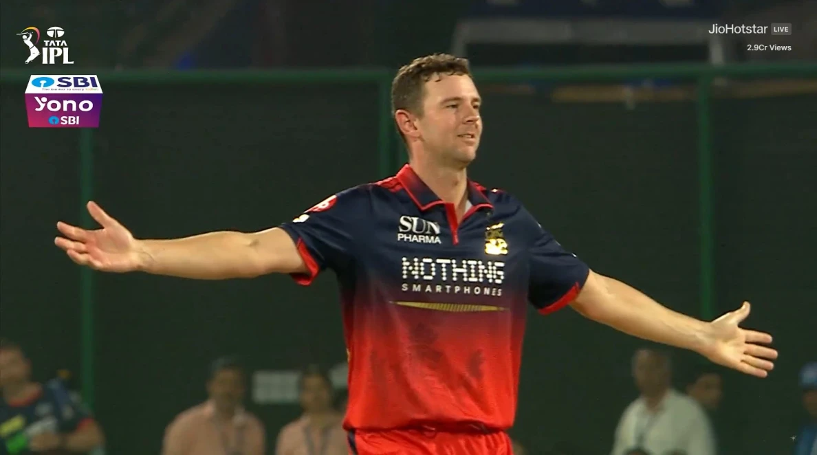 Josh Hazlewood delivered an outstanding bowling performance at the 2026 IPL match between Delhi Capitals and Royal Challengers Bengaluru. The game was played at Arun Jaitley Stadium. RCB decided to bowl first, and Hazlewood made an instant impact. He took the crucial wicket of KL Rahul on his first delivery. The delivery was a short ball which landed outside the off stump area. Rahul attempted to pull the ball but he failed to establish his control over it. The ball went high in the air, and wicketkeeper Jitesh Sharma took an easy catch. Watch Video here: Josh Hazlewood being so ๐๐ค๐ค๐ ๐๐ฅ The #RCB seamer starts his spell sending back KL Rahul and Sameer Rizvi ๐ฎUpdates โถ๏ธ https://t.co/HIiNNEutP0#TATAIPL | #KhelBindaas | #DCvRCB | @RCBTweets pic.twitter.com/OSMRlv07PX — IndianPremierLeague (@IPL) April 27, 2026 The next ball was even better. Hazlewood bowled a good length delivery outside off. Sameer Rizvi tried to play a big shot away from his body. The ball moved a little and took the edge. Jitesh Sharma once again proved to be secure behind the stumps. Two balls, two wickets, and Hazlewood was on a hat-trick. This moment changed the game very early. The sudden pressure which faced Delhi Capitals came as a major shock for their players. Hazlewood showed his T20 fast bowling excellence through his precise bowling performance which he executed in the match. Also Read | Who is Sahil Parakh? DC’s 18-year-old debutant in IPL 2026 DC collapse and Match Scenario The Delhi Capitals team suffered a terrible beginning to their match. The team failed to create any partnerships after they lost their initial wickets. Debutant Sahil Parakh faced 2 balls before he got dismissed for 0 during Bhuvneshwar Kumar's bowling. KL Rahul scored just 1 run from 3 balls before getting out to Hazlewood. Sameer Rizvi also got out for 0 on the next ball. Tristan Stubbs tried to play some shots and made 5 runs from 3 balls, but he was also dismissed by Bhuvneshwar Kumar. The captain Axar Patel got dismissed for a score of 0 after he failed to make a run. Nitish Rana was batting on 1 run, and Abishek Porel was yet to score. At 7 runs for 5 wickets in just 2.4 overs, DC were in serious trouble. Bhuvneshwar Kumar bowled exceptionally well as he took 3 wickets while allowing only 2 runs to score during his 1.4 overs. Hazlewood took 2 wickets for 5 runs in 1 over. The players like David Miller still had to bat. The match became more difficult for Delhi Capitals because of the damage which Hazlewood and Bhuvneshwar caused early in the game.
