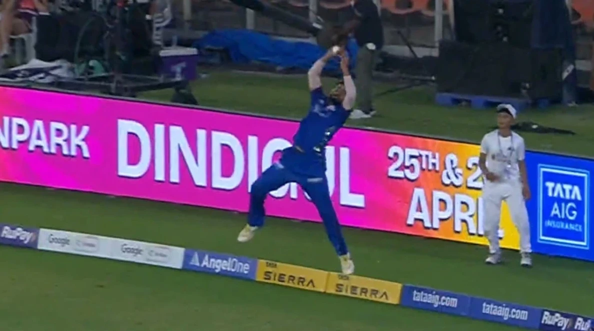 There was one brilliant moment on the field that put the Mumbai Indians on a strong footing once again when Naman Dhir took a screamer of a catch of Washington Sundar, during their IPL 2026 game against Gujarat Titans at Ahmedabad. Gujarat Titans were already struggling to chase down the large target of 200 when Sundar had the intention of playing his shots. The man had already scored 26 off 17 balls, having hit five boundaries and was trying to build on it, however what happened next in the 8th over changed the scenario once again. Mitchell Santner went for the short one, a ball that didn't seem like much of a wicket-taking delivery. Sundar went for a pull toward deep mid-wicket. It seemed like the ball was to carry over the man, but Dhir had different ideas. Standing very near the ropes, he made sure he was in the right position, jumped very well and caught it over his head. The Mumbai Indians player somehow kept his balance and didn't hit the rope with his back. The third umpire went in for a second glance, however it was confirmed to be a clean catch. This was also the turning point in the game as Gujarat Titans went 54 for 4 at 7.2 overs. Watch the video here: View this post on Instagram A post shared by Devil 👿 (@pandit.aman.1012) Also Read | Watch: Jasprit Bumrah Strikes on First Ball, Dismisses Sai Sudharsan after going Wicketless in 5 Matches Dhir's Catch - The Turning Point of the match Dhir took the catch when Gujarat Titans were struggling to recover from the early wickets of Sai Sudharsan (on the first ball), Jos Buttler and Shubman Gill. Only Sundar tried to score, but his departure left Gujarat Titans in a serious crisis at 54 for 4 in their attempt to score 200. The Mumbai Indians pacers maintained tight control with Jasprit Bumrah, Hardik Pandya and Ashwani Kumar picking up a wicket apiece in the powerplay, Santner removed the well set batter which further put pressure on the side. Tilak Varma's Century Set the Platform- Earlier the Mumbai Indians set a massive score of 199 for 5 in 20 overs thanks to a remarkable knock from Tilak Varma who was undefeated on 101 off 45 balls with 8 fours and 7 sixes. Naman Dhir also chipped in with 45 runs with Hardik Pandya adding 15 with Gujarat Titans' bowlers lacking control with Kagiso Rabada taking three wickets. At the time of writing Gujarat Titans required 146 runs in 76 balls with Glenn Phillips and Rahul Tewatia at the crease, the required rate has been steadily increasing and with Dhir taking a sensational catch, the Mumbai Indians seemed completely in control of the match.
